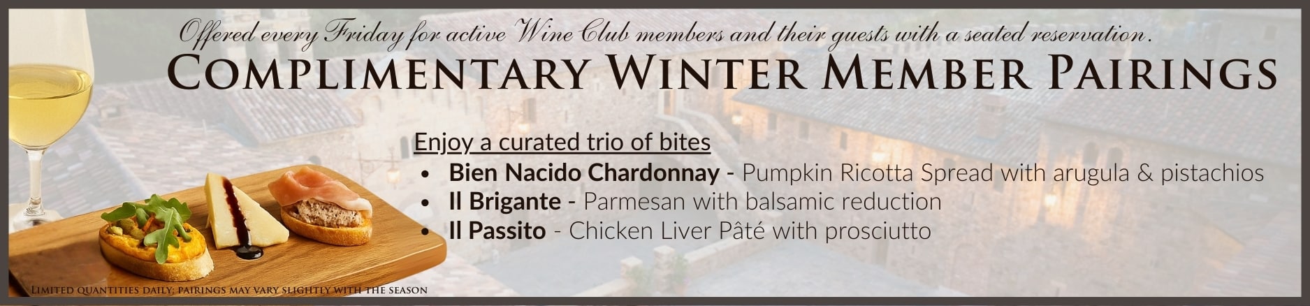 Celebrate the season with Fall Member Pairings, offered each Friday exclusively for active Wine Club members and their guests with a seated reservation.
